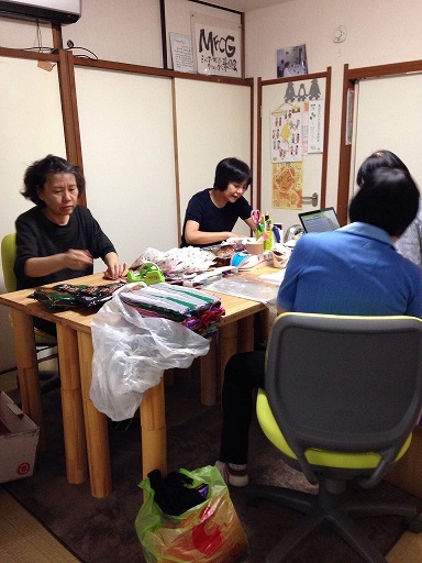 毎週ボランティアメンバーが集まり、こつこつと仕分け、梱包作業に取り組んでいます。事務所が広くないのでががぁーっとできないのがつらいところです。