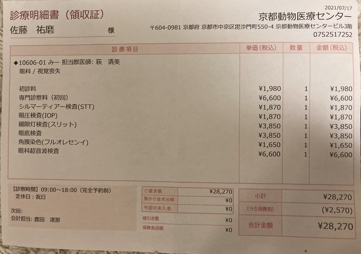 眼科治療に詳しい病院を紹介され翌日紹介された動物病院