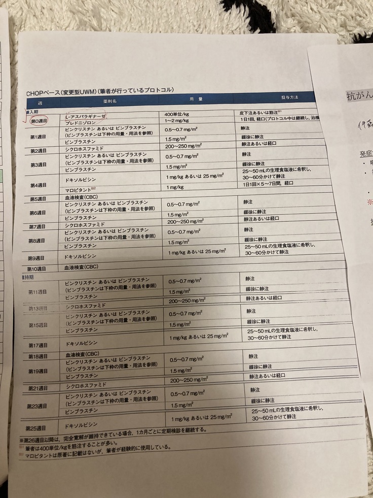 抗がん剤治療、ステロイド投与、血液検査、点滴が必要となり