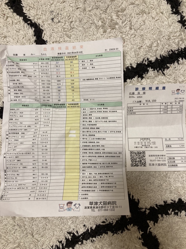 午前中に投与し、副作用がかなり強い為みーちゃんの体調を配慮し入院させることにしました。