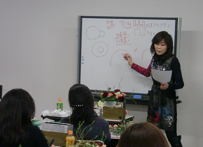 瞬時に取捨選択できる「直観力」は、すぐに身につくことはできません。花を教えてきて、体験レッスンで性格がわかります。永くレッスンすれば、もっと思考がわかります。1回楽しむだけではなく、受講者が継続できる教室を作りたいのです。