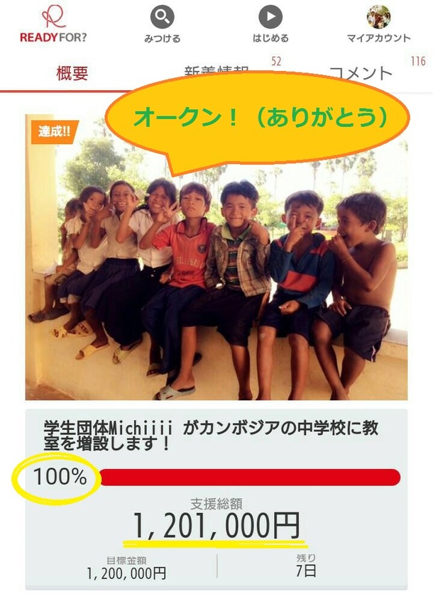 そして、改めましてご支援してくださった116人以上の方々(2016/06/20 18:00時点)に心よりお礼申し上げます。