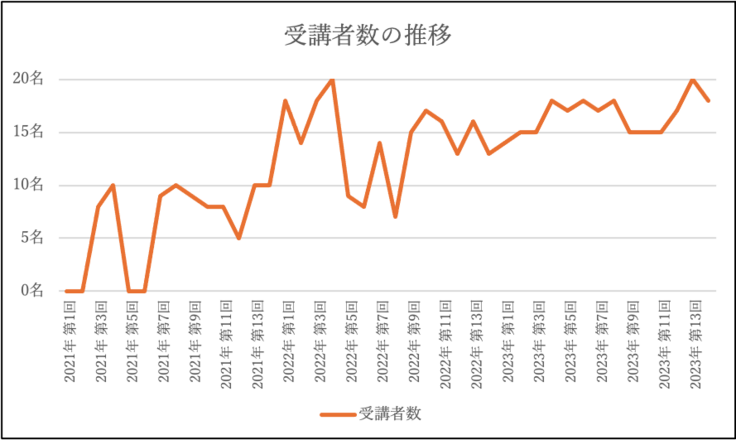 2021年〜2023年に女性のためのWord・Excel基礎講座は、年々受講希望者が増えてまいりました。