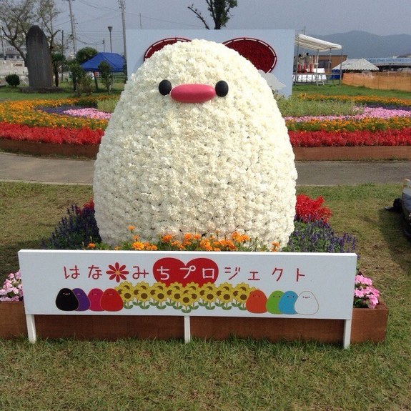 この「はなぴよ」は、昨年フラワーアートなどのデザインを担当し、現在私とともにプロジェクトの代表を務めるみちのく生がデザインしました。