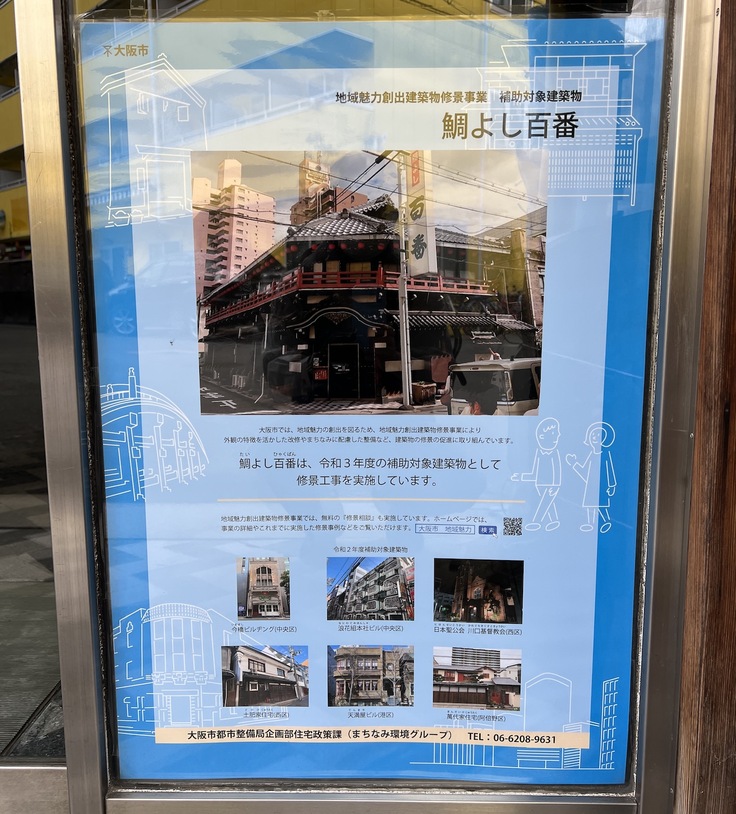 今回の修復工事では、大阪市より大阪市地域魅力創出建築物修景事業での修景補助(補助金)の交付決定を受けました。