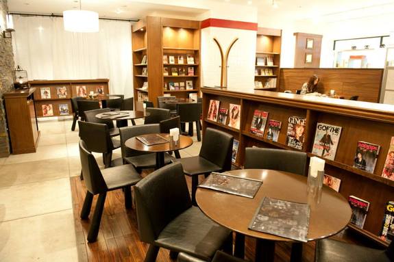 壁の本棚には、ITに関する本が800冊ほどぎっしりと配架され、ここのメンバーになると貸出てもくれとのこと。