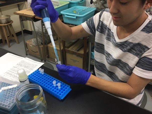 どんな微生物がいるか調べるために、サンプルからDNAを抽出します。