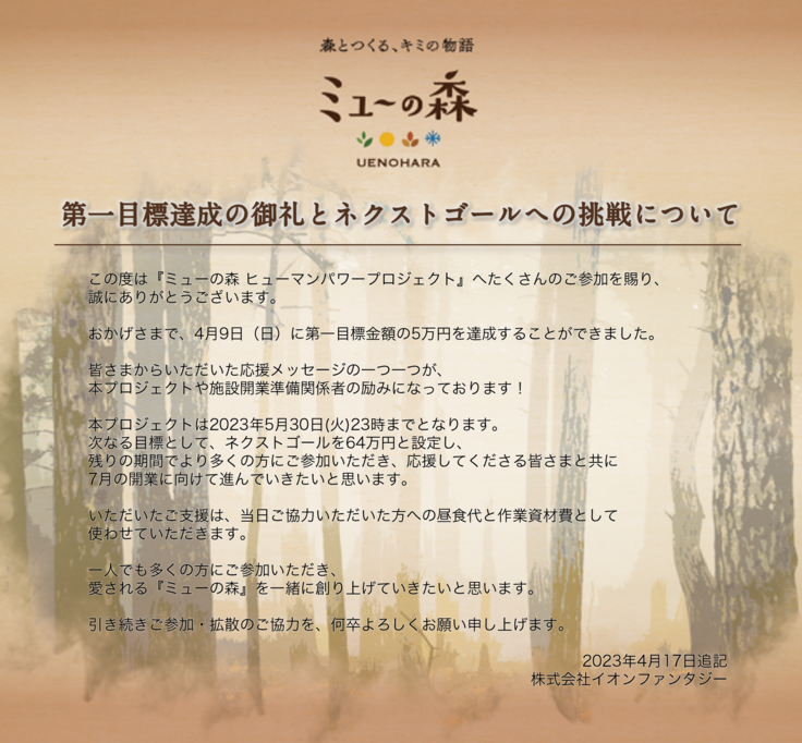 ※当日の詳細情報は目標金額達成後、事務局よりご連絡させていただきます。