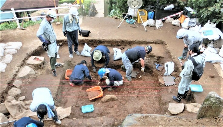 残念ながら、一般の方の見学はご遠慮いただいています。コロナ禍での発掘調査につき、ご理解いただきたいと思います。