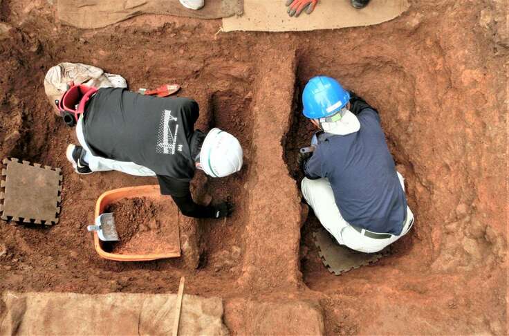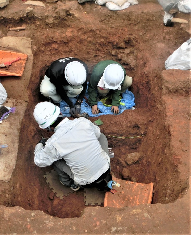 北側から撮影|遺構発掘現場はかなり深くなってきました。外側から作業するのは難しくなったため、中に入っての作業です。