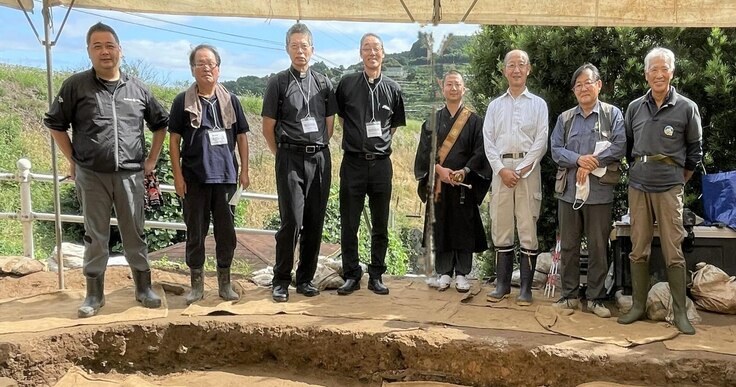 18日が発掘作業の最終日です。午前中には本住山自證寺副住職、水主町教会司祭、島原教会牧師の皆さまが相次いでお出でになり、発掘調査を委託しているオリエントアイエヌジーのご家族の職場見学もありました。