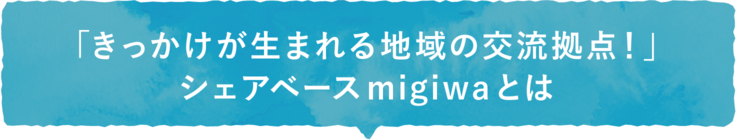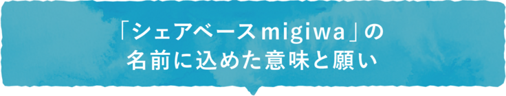 シェアベースmigiwaは、汀(みぎわ:水際や波打ち際)のように、この場に人やモノや情報、新しいアイデアが流れつき、それが交わるような場所になればと思って名づけました。