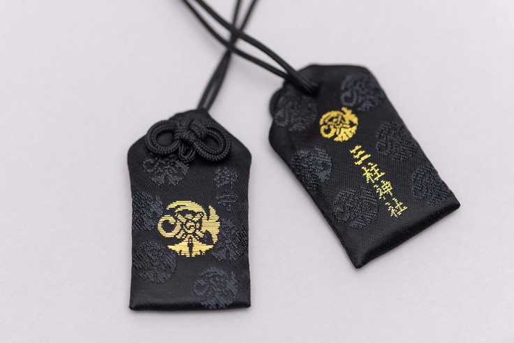 通常の御守りとは異なり、黒ベースの生地に祇園守りが輝くようにデザインいたしております。