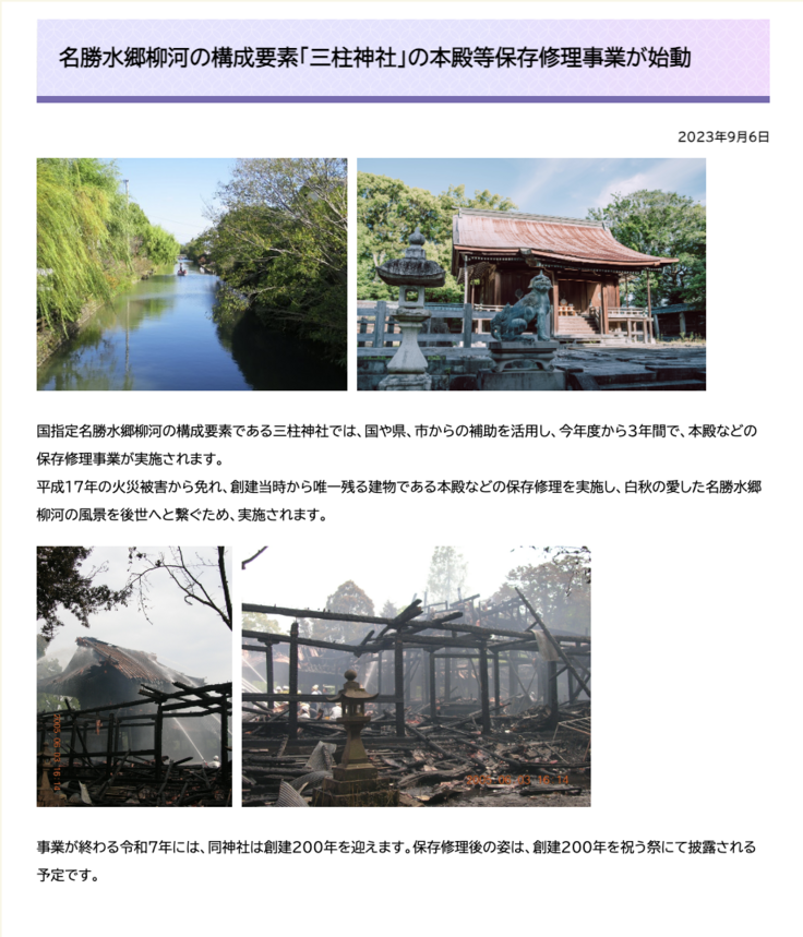 【残り9日!】保存修理事業について、名勝水郷柳河の構成要素として柳川市に紹介いただきました
