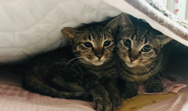 みいちゃんの方が人懐っこく、まるくんの方は少し臆病な性格です。