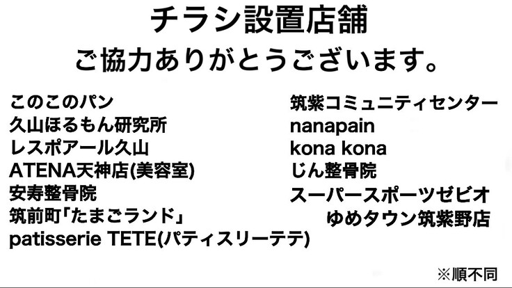 【目標金額の達成率110%です!!】 チラシ設置ご協力店舗様一覧