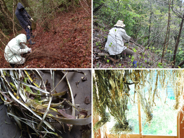 雁皮は栽培が困難で野生のものを採取するしかありません。採取する時期は決まっていて、3月下旬から4月下旬、つまり1年にたった1度です。翌年の3月まで、1ヶ月という短い期間で採取した物を1年間の制作に使用します。