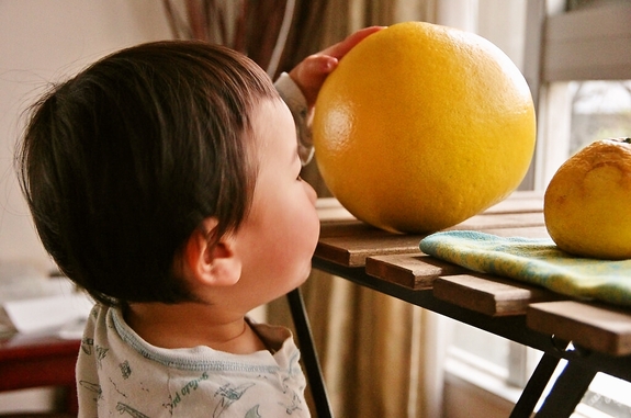 (世界最大の柑橘・晩白柚の香りに惹き寄せられてしまいます。)