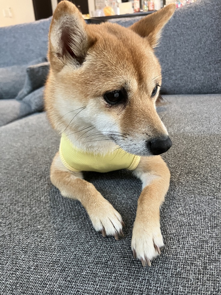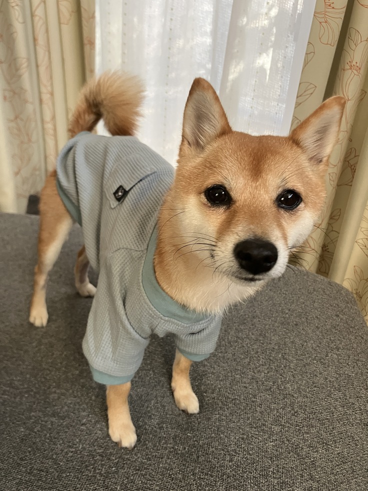手術の際にかなり多くの毛を刈ってしまったので当分の間は服着用です。