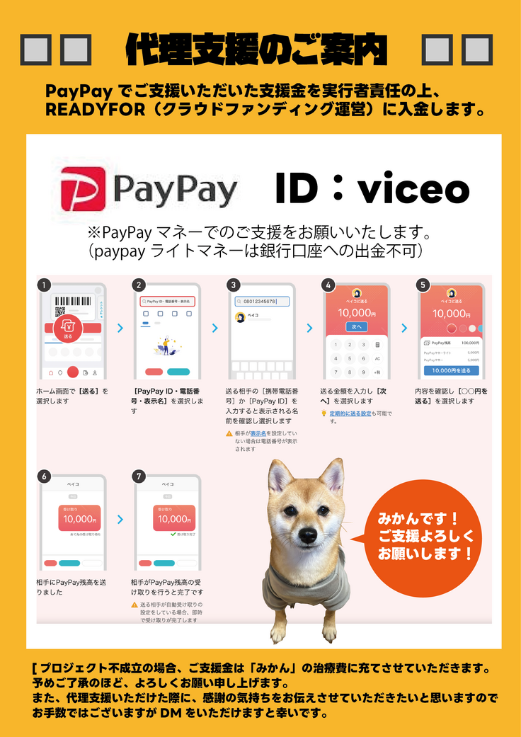 支援金はすべて、みかんの治療に必要な費用としてのみ使わせていただきます。