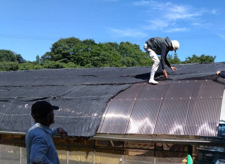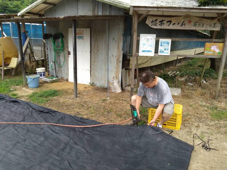 「黒色って、、、熱を閉じ込めないの?」と素朴な疑問がわきましたが、張った直後の鶏舎内涼しくなっている!!
