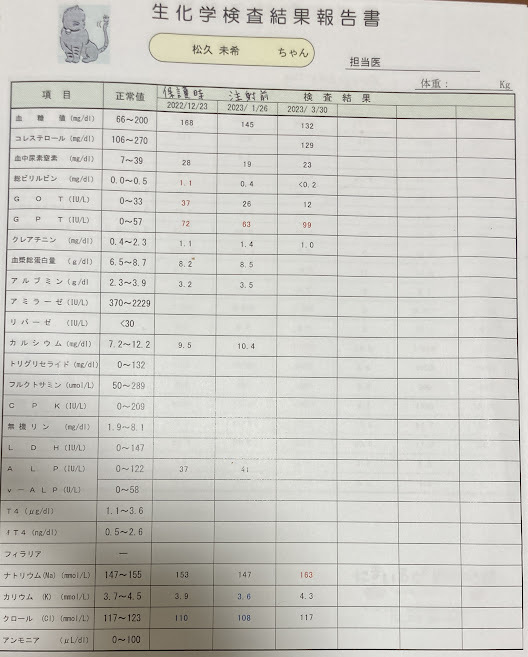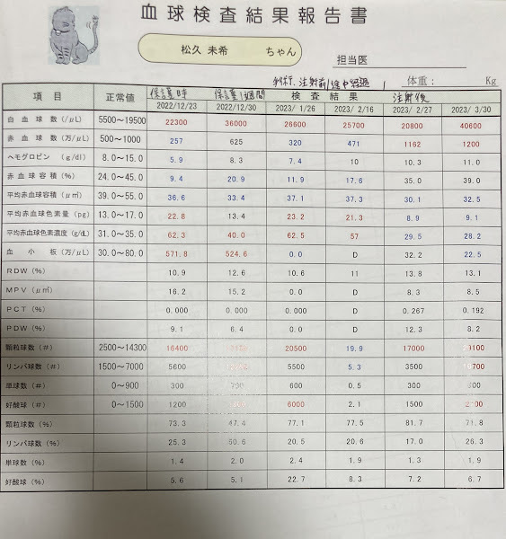 一か月注射後のからの定期血液検査です。
