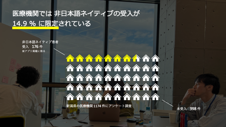 新潟県の医療機関1174件に、外国語対応調査を行なったところ、非日本語ネイティブ患者を受入可能な医療機関は176件に限定されていることがわかりました。