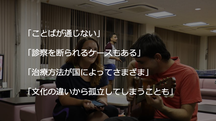 医療情報の入手の難しさ、患者・医療従事者の言語レベルのミスマッチ。