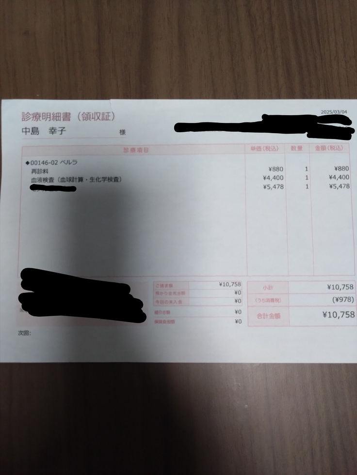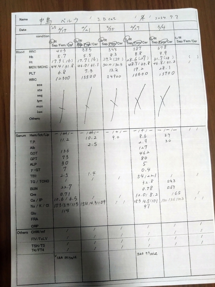3/4 内服に切り替えて約1週間後の血液検査結果です。