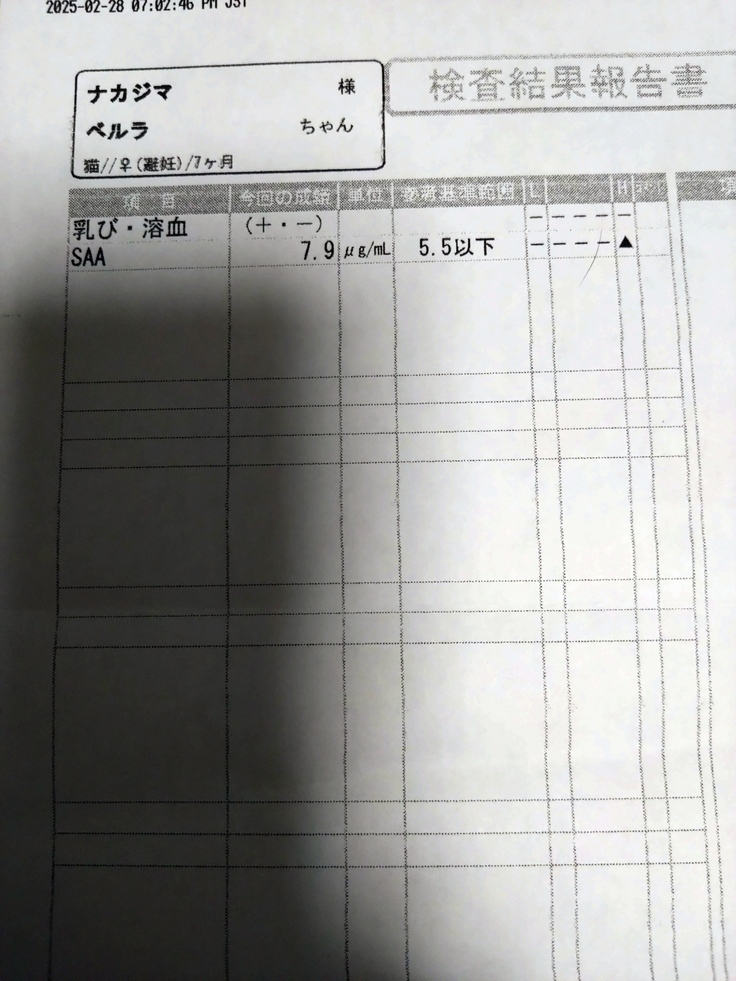 この際のSAAの値も、186→7.9(正常値5.5以下)まで下がりました。
