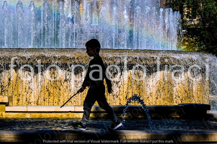 (スフォルツェスコ城の噴水前を歩くこども。写真提供 パオロ・リアチ)