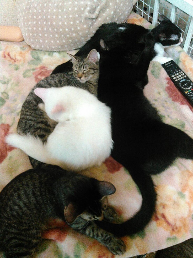 私が保護していた野良猫達は、有料駐車場に居る事が多かった。猫を保護し始めてわかった事は、人目を避けてエサやりをしている方が居たりする事。人の玄関先では、出来ないから猫達を駐車場に集めてエサをやる。猫達は、エサがもらえるのが、わかると時間になると待っている。 そして駐車場で車にひかれてしまう猫達が居る。 エサやりさんの存在を知らなかった私は、子猫がひかれている側に居る子猫を急いで保護して里親に出していた。 その内、エサやりさんと遭遇して私が子猫を里親に出し、 親猫を避妊させますと話し、 近所の方々にも話し、協力を得る事にした。 人の庭先や玄関に立ち入り、 子猫を保護する事もある為、 予め、近所の方に話しをする。猫が嫌いな方は、エサをやらないでと言うが、エサをやり、保護して避妊や去勢をして増えない様にしたい事。 エサをやる事でゴミを漁らなくなる事など話す。 私は、子猫を片っ端から捕まえて里親に出したので野良猫がどんどん減って行った。成猫もなつこい子は、避妊で保護した段階で里親を探す。 動物病院の先生とも仲良くすることで猫の一時預かりや治療費などを安くして頂き、 何とか自分の貯金でやり繰りしていた。 白猫のメスをTNRしようと捕まえた所、すでに出産間際。 先生が出産させてから避妊させましょうと言って下さり、 無事、生まれて子猫も里親が見つかった。 野良猫のメスを保護する時は、妊娠していないか? すでに出産して子猫を隠していないか? 猫の妊娠期間は、2か月。 今から避妊させないと春には子猫を連れて来てしまう! 野良猫にエサをあげるだけでは、不幸な猫は、減らせない。子猫は、直ぐに保護する。 ちゅうちょしてたら死んでしまう。 私は、不幸な猫が増えない様に頑張ります!