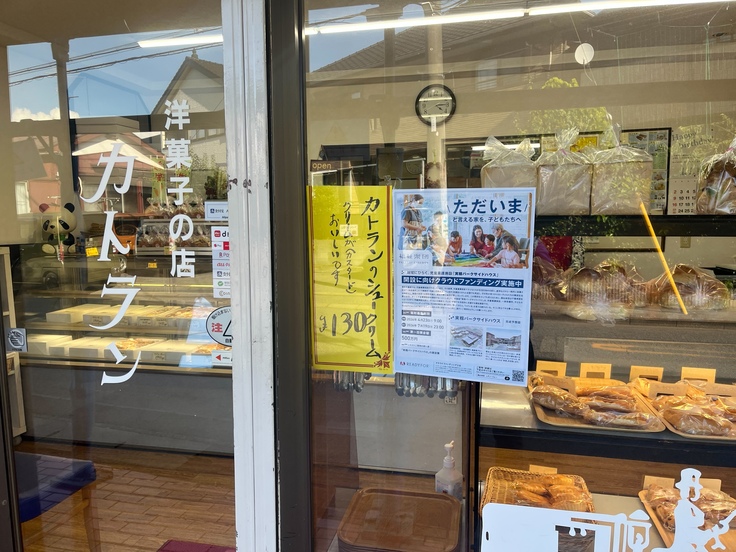そんなカトランベーカリーさんが、店頭にこのクラウドファンディングのチラシを貼ってくださっています。