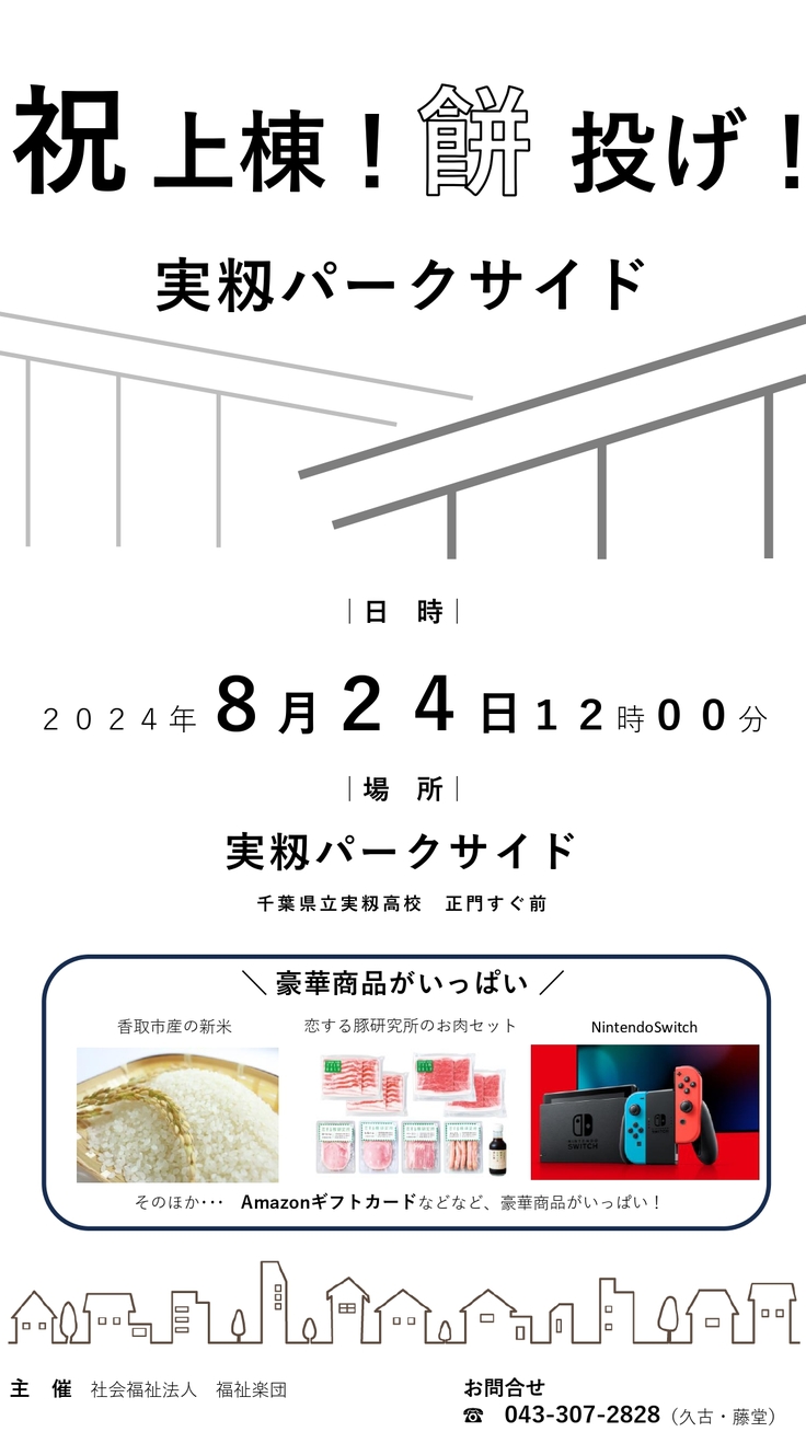 上棟式では、餅投げの他、豪華景品が当たるイベントも予定しております。
