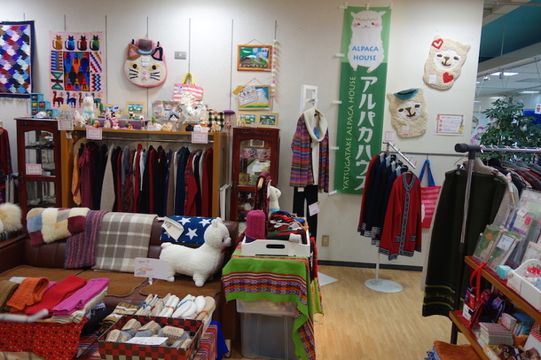 この写真は長野県茅野市にある八ヶ岳アルパカ牧場のアルパカグッズを販売している専門ショップです。魅力的な製品が色々あります。リターンは予算の範囲内である程度ご購入者の希望をお伺いいたします。