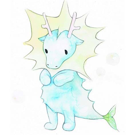 散歩していると、大きな川の水面がキラキラ光って、へんてこな竜が現れた。