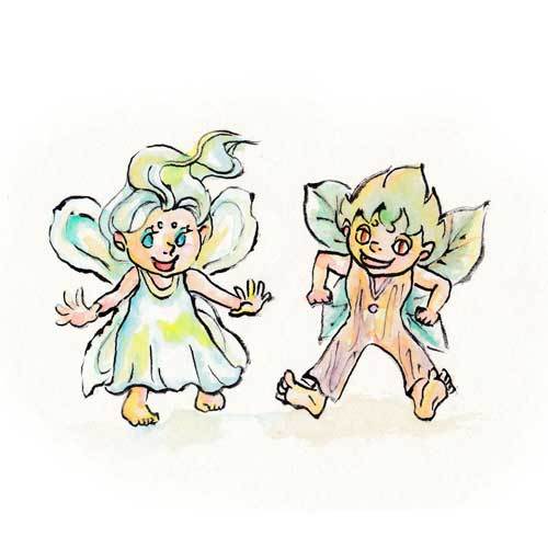 水の妖精きららと、木の妖精ぽぽ は、緑いっぱいの森の中で暮らし、とっても仲良しでした。