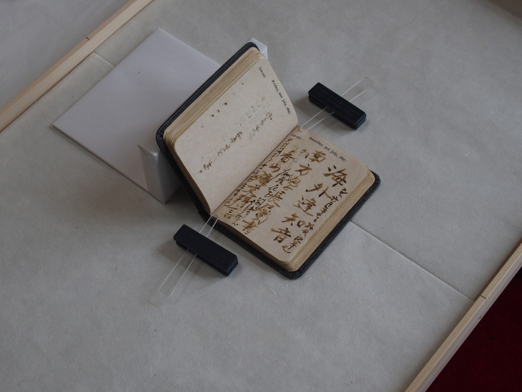 今回は株式会社芸匠により、『原君原臣』と手帳のサインについて撮影、色彩合わせをしてもらいました。それぞれ写真撮影をし、水彩絵の具で色調を探っていきます。今後色校をして製本し完成となります。