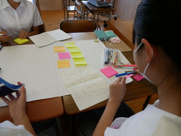 予行演習で取材した生産者・鐘ヶ江さんについて、内容をまとめる作業をワークショップ形式で行いました。