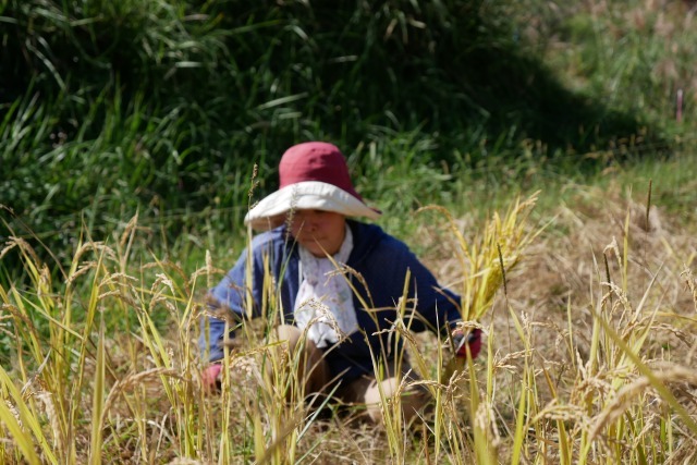 無事に稲刈りを終えました。種まきから田植え、夏の暑い時期の除草、そして稲刈りまで、編集部高校生が取り組みました。