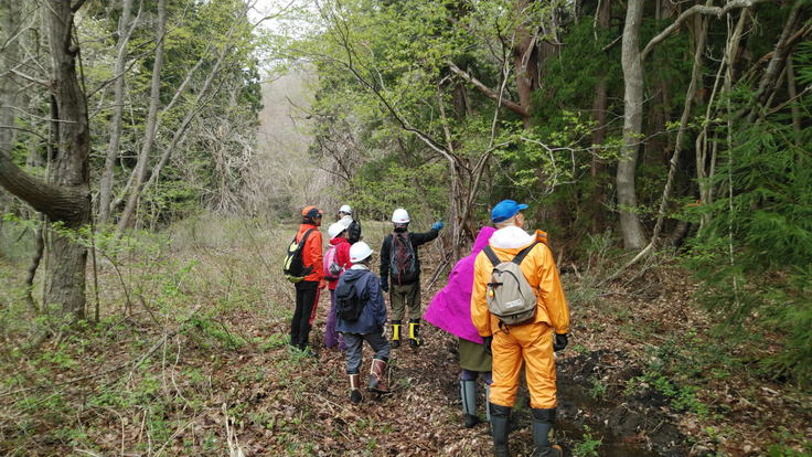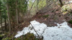 3/31から5月に掛けて5回ほど。こちらは5月になっても山にはまだ雪が残っています。道なき道を歩いたことも。この調査で、今年整備予定の道を決定しました。