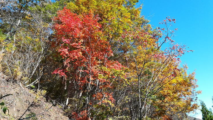 白桑山林道の紅葉は青空に映えて奇麗でした!