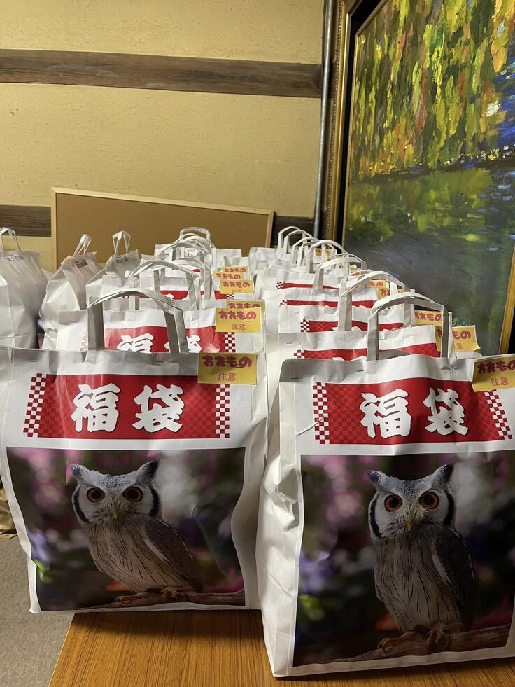昨日の富士山はそれは見事でした。立ち入り禁止の看板も可愛かった。福袋も鏡餅も整いました。1月1日、この鏡餅の横にはフクロウさん2羽が鎮座して皆様をお迎えします。