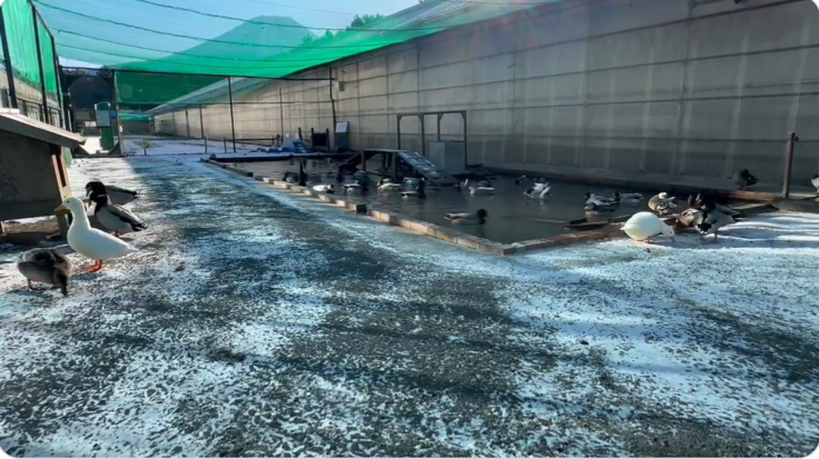 1月14日朝のコールダックプールの様子です。最低気温は−7℃、朝霧高原は前夜の雪で薄ら積雪しました。水鳥さんたちは寒さに強いので大丈夫ですが、温室内の鳥さんたちには細心の注意が必要な時期に入りました。そんななか、皆様からいただく応援は本当に心強いです。