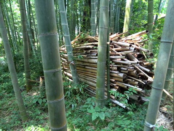 また、高齢化が進み、手入れをされていない山も多く成長の早い竹が密集しすぎて手のつけられない「竹害」も多くみられます。そこで、私たちは困りものだった「竹」を砕いてお米や野菜等の肥料にして里山にある資源を有効利用したいと考えております。