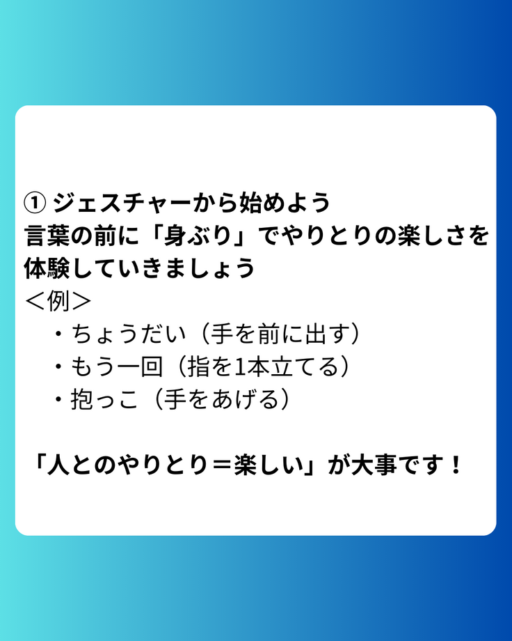 まずは「人とやりとりするのって楽しい!」と思ってもらうことが大事です。
