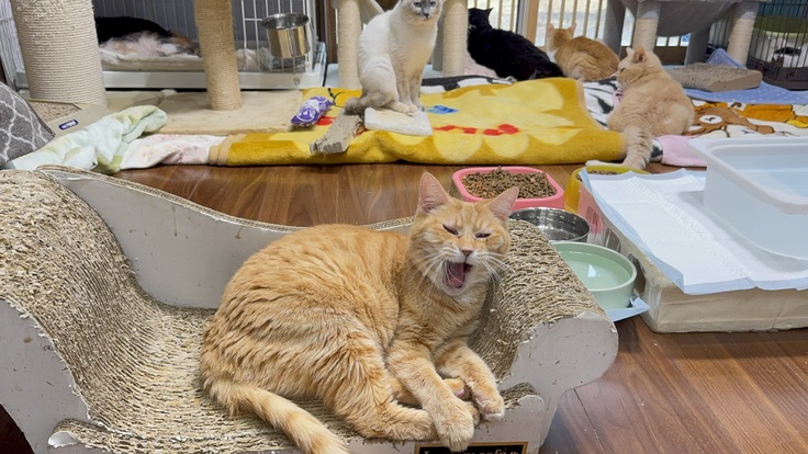 大変人懐っこい子で、猫見知りや人見知りをしない性格のため、初対面のお客様やスタッフにも毎日甘えてくれています。