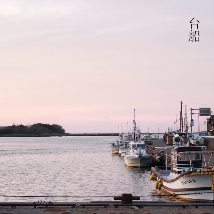 九頭竜川に停泊している土地のような船。海洋工事の際は 構造部材および浮体物等を運搬する作業船。河口まで見渡す ことができる最高の夕日スポット。(*普段は登れません)
