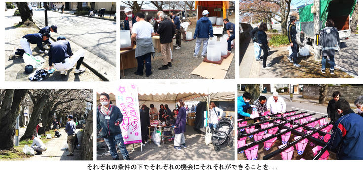 地区住民は地域活動に関しては、職業、家庭、モチベ―ションの高さなどそれぞれ全く違う条件の下にあります。多様な条件の下に同じ地域に住む住民たちがそれぞれの考え方や条件に合わせ、それぞれの時間配分で参加できるのが、私たちの桜のライトアップです。