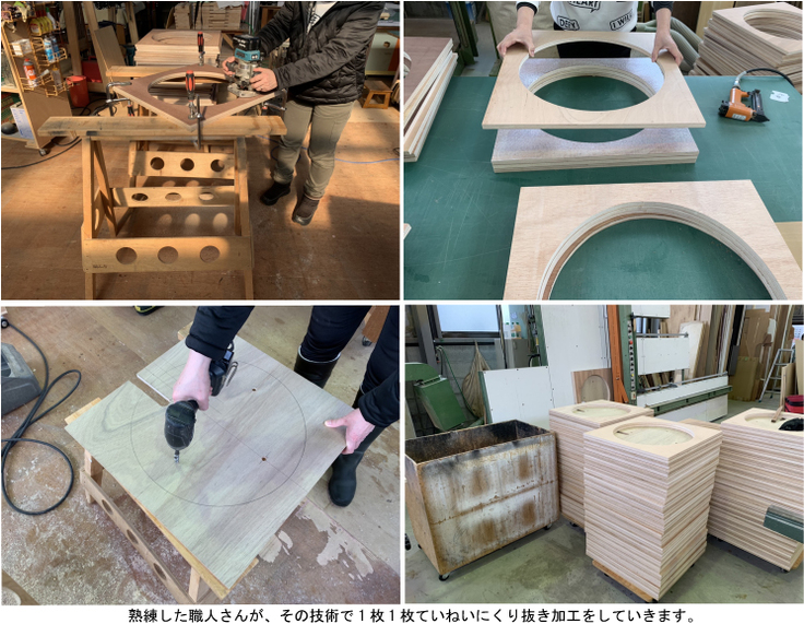皆さん、こんにちは!少しのごぶさたをしております。私たちの行燈用部品がようやく少しずつ納品準備が進んでいます。今日ご紹介するのは、行燈の基底部分です。熟練した職人さんの手で一つ一つていねいに加工されています。